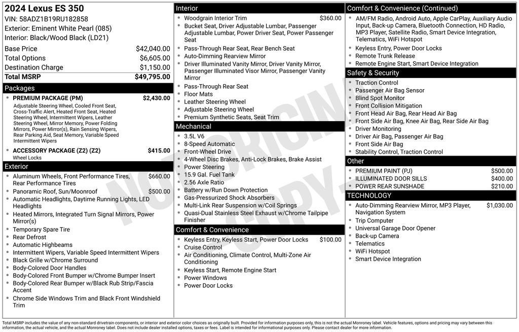 All Vehicles Quoted price exclude $999 dealer service fee, $399 Electronic Filing Fee and $99 tag agency fee (which charges represent cost and profit to the dealer for items such as inspecting, cleaning, adjusting vehicles, preparing documents related to the sales and filling electronically the transaction), sales tax, tag, title and government fees. New vehicle pricing already includes all generally available manufacturer incentives which may expire at any time. Accessories and color may vary. Prices are subject to change without notice to correct errors or omissions, or in the event of inventory fluctuations. We have made reasonable effort to ensure that the information on this site is accurate, but we do not guaranty this. Neither we, nor our suppliers assume any responsibility for errors or omissions or warrant the accuracy of this information. Inventory shown is subject to prior sale and may be unavailable. Prices are valid only on the day of publication. Internet price not available with any manufacturer-preferred lender special promotional financing, lease, and some other offers. Must present or refer to this internet advertisement to qualify for the internet price. Please contact the store through our website or by phone for more details and availability. We will NOT sell or lease New Vehicles in the states of Alaska, Montana, New Hampshire, or Oregon. New Vehicles are for sale or lease to an ultimate consumer only. We will NOT sell or lease a New Vehicle to any person whose name, address, or business appears on the manufacturer Suspected Exporter Manifest or any suspected reseller or exporter. Finally, please note that any used vehicle you are considering may have unrepaired manufacturer safety recalls. To check the recall status of the specific used vehicle you are interested in purchasing, please visit www.safercar.gov. MPG estimates on this website are EPA estimates -- your actual mileage may vary. For used vehicles, MPG estimates are EPA estimates for the vehicle when it was new. The EPA periodically modifies its MPG calculation methodology; all MPG estimates are based on the methodology in effect when the vehicles were new (please see the "Fuel Economy" portion of the EPA's website for details, including an MPG recalculation tool).